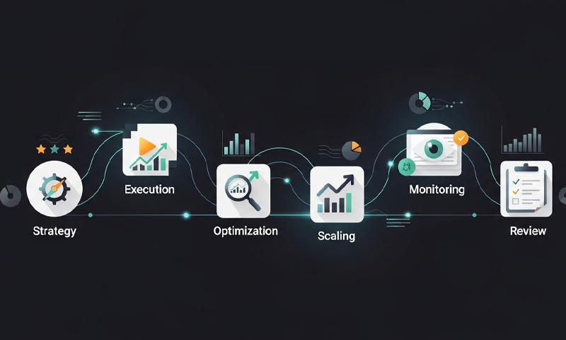 市场判断 → 渠道选择 → 结构搭建 → 数据优化 → 节奏控制