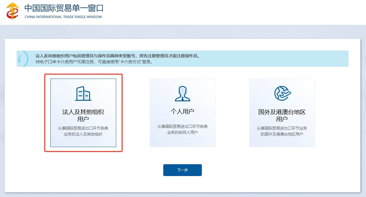 二、当营业执照上的经营范围含有“货物进出口”或“技术进出口”后,开始网上办理;流程如下