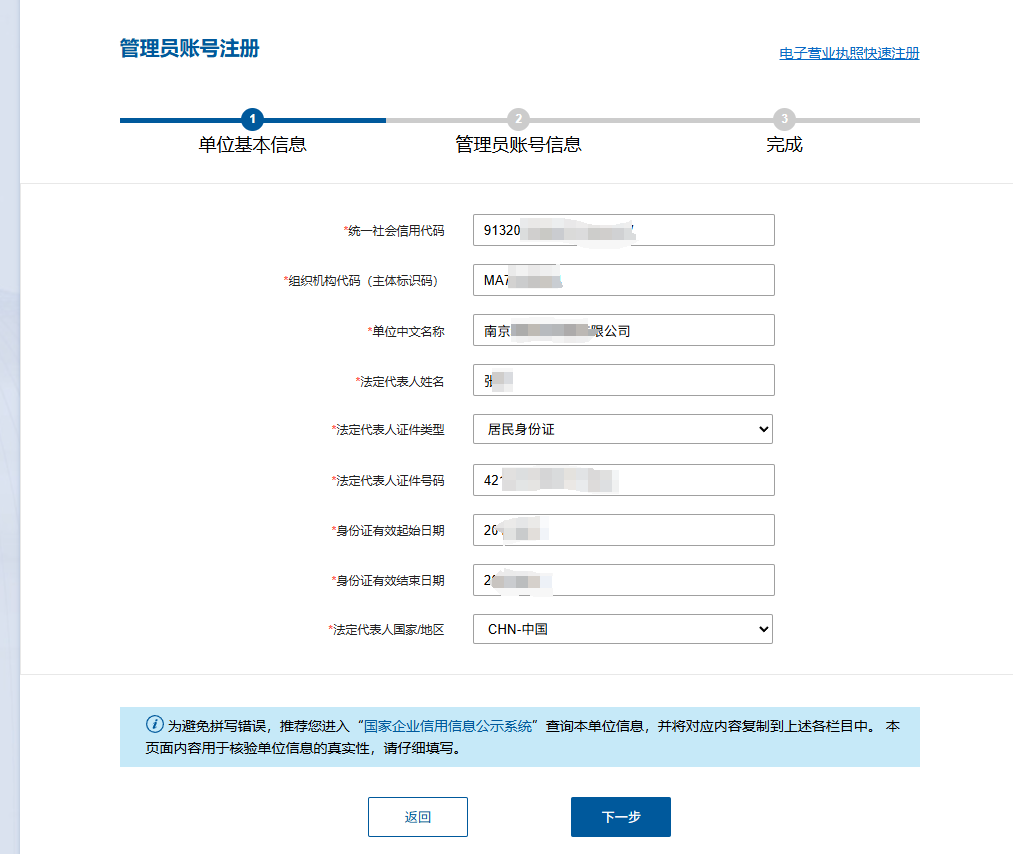 11、按步骤往下填写即可,注意: 这里要填写企业的英文名称了, 填写后应该就不好改了,所以英文名要想清楚。 公司英文名也需要注意下,不仅要好记,还要不影响后期的排名等。 例如客户搜你公司名简称时,是否会出现大把的“想同关键词”的网页;