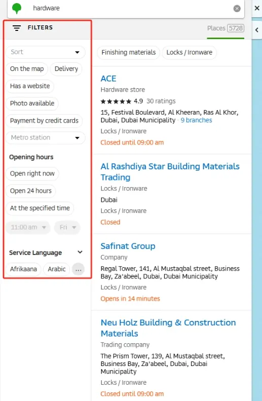 2GIS.ae在阿联酋提供详细的本地企业名录,是主要提供阿联酋的本地搜索服务网站。主要覆盖俄罗斯、哈萨克斯坦、意大利、捷克共和国、智利、阿联酋、乌兹别克斯坦、吉尔吉斯斯坦、塞浦路斯、阿塞拜疆和乌克兰等国家的765个城市,
