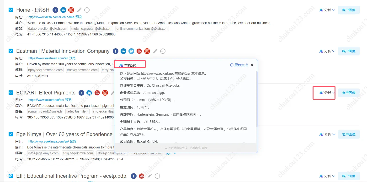 我们已经从展会上拿到了参展商名单,结合这份名单,可以轻松找到客户的联系方式。