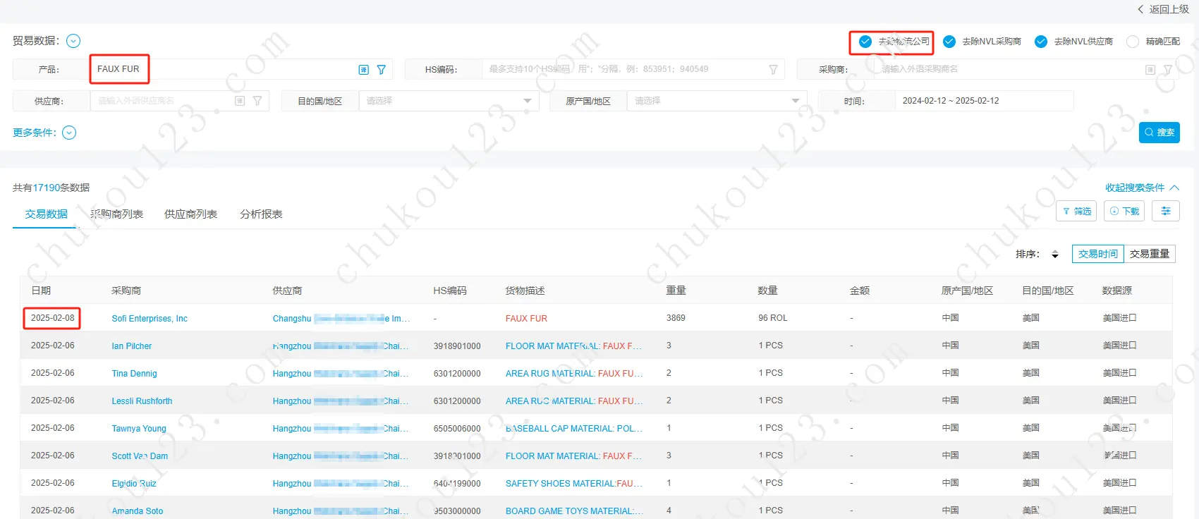 海关数据找人造皮毛材料的方法如下: