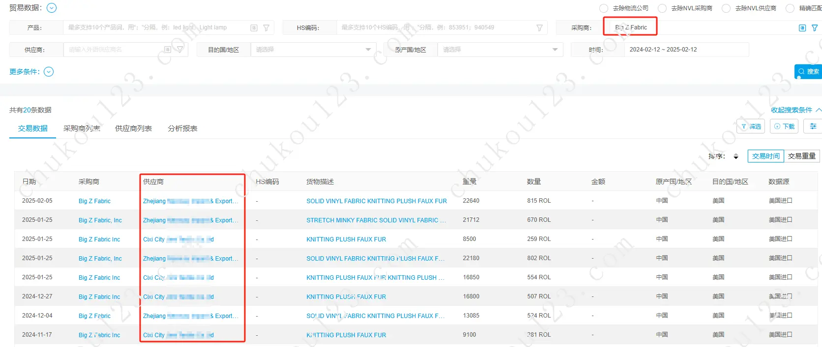根据海外客户公司名,查看海外客户现有供应商,知己知彼。
