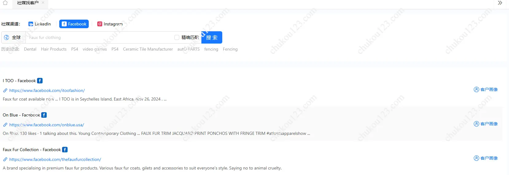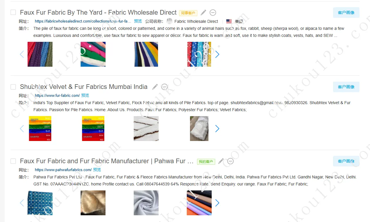 Queenie擅长线上自主开发,寻找潜在客户名单、找老板买手负责人、以及做背调。我们通过人造毛皮面料来做示例;