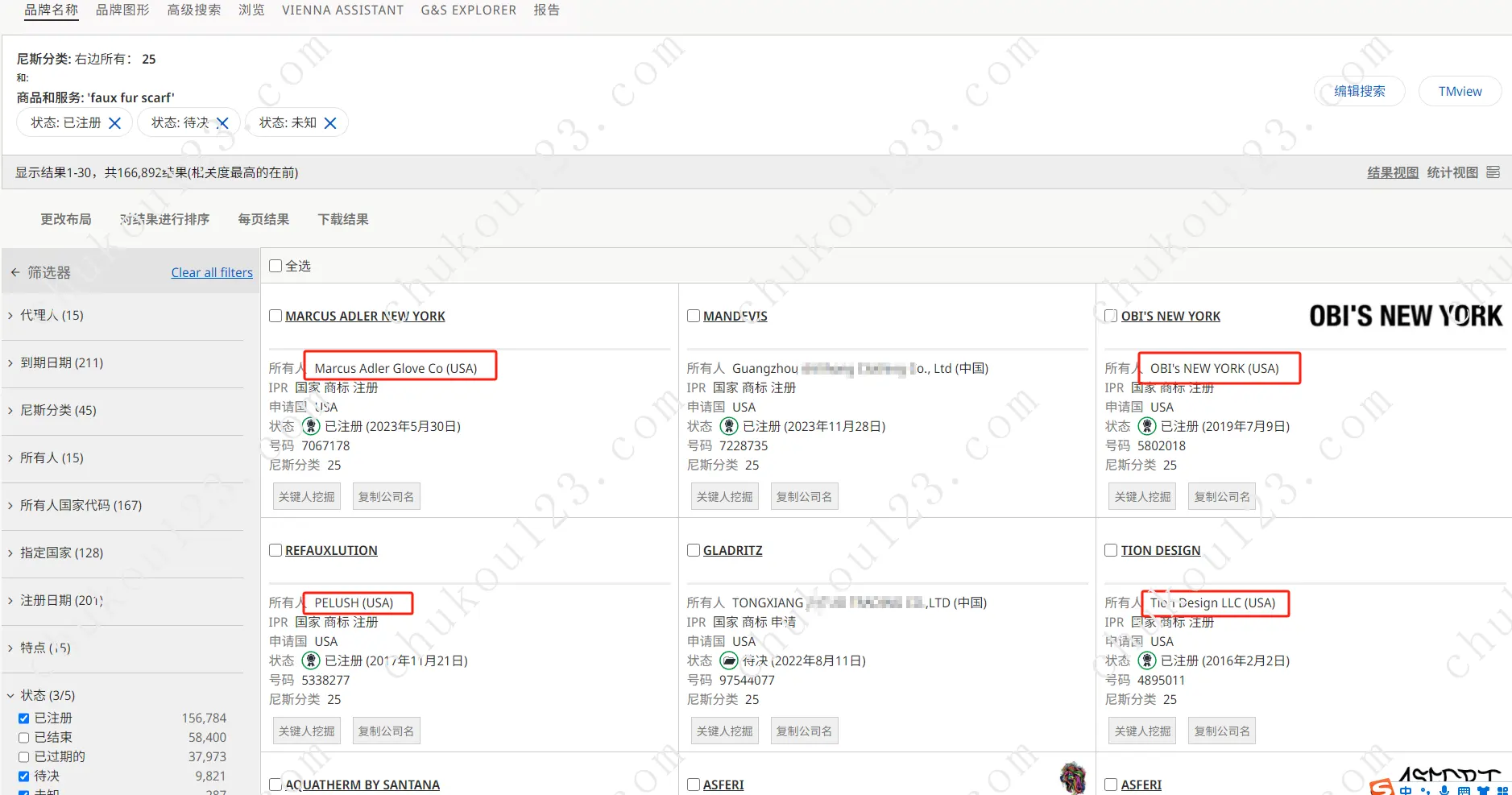通过全球商标库寻找有注册商标的品牌方,一键查找品牌所有者联系方式,找代加工项目。