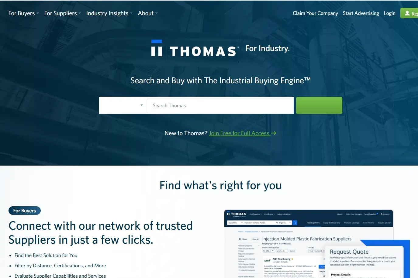 Thomasnet(https://www.thomasnet.com/): Thomasnet 集中了工业供应商和制造商信息 ,里面也 有不少化工企业的资料。用它的搜索工具 ,迅速锁定你需要的化工客户!