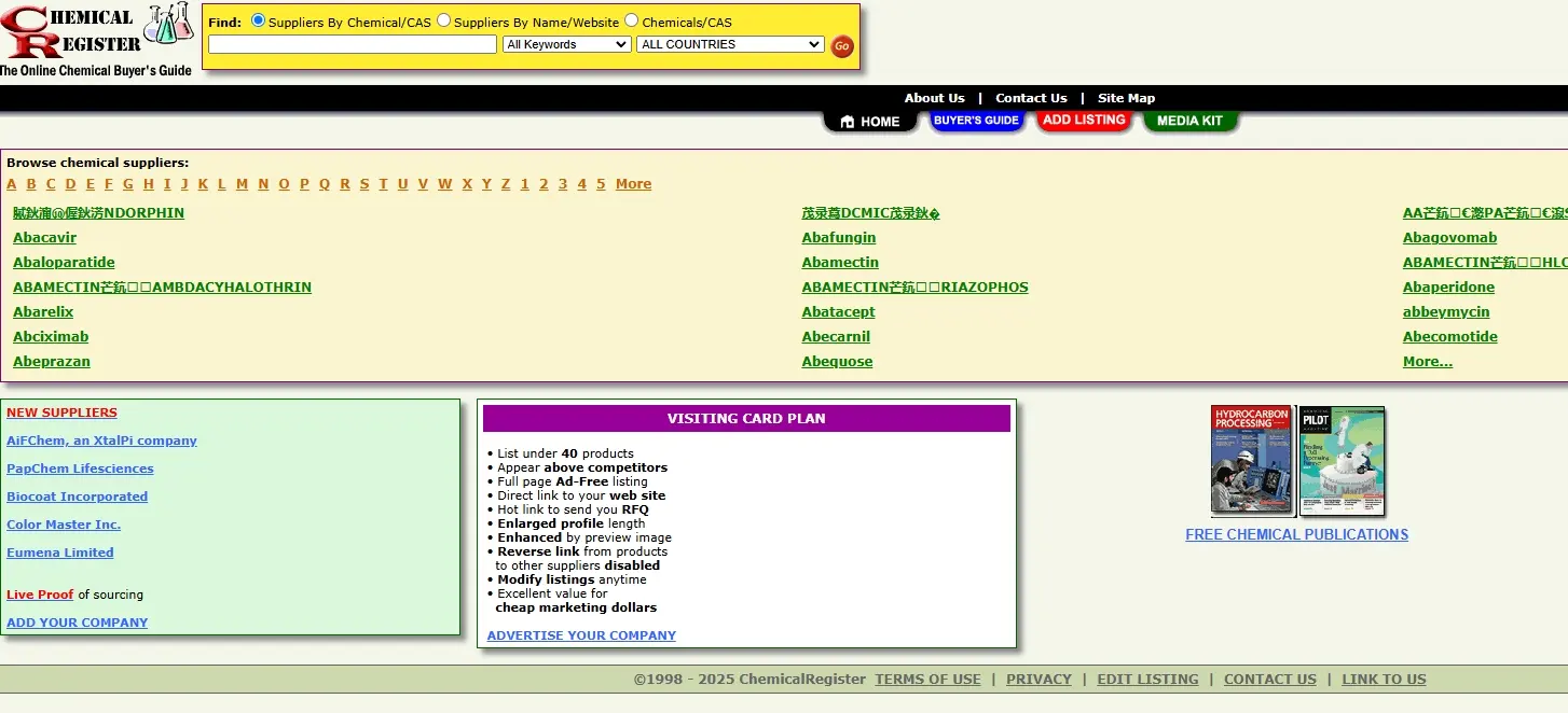 Chemical Register(https://www.chemicalregister.com/): Chemical Register 是专注于化工供应商 和产品的平台。它提供了详细信息 ,方便你挑选目标客户。