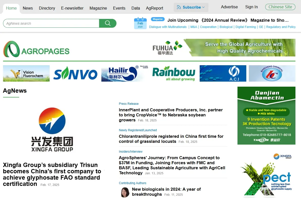 AgroPages(https://www.agropages.com/)提供行业新闻、市场分析、产品目录和供应商名录。