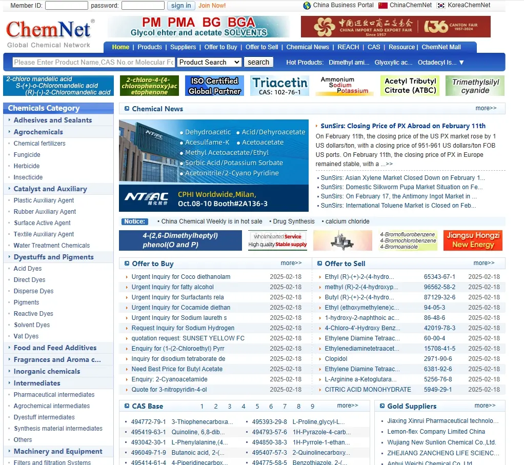 ChemNet(https://www.chemnet.com/)化工行业的 B2B 平台 ,可以找到全球化工产品的买家和供应商