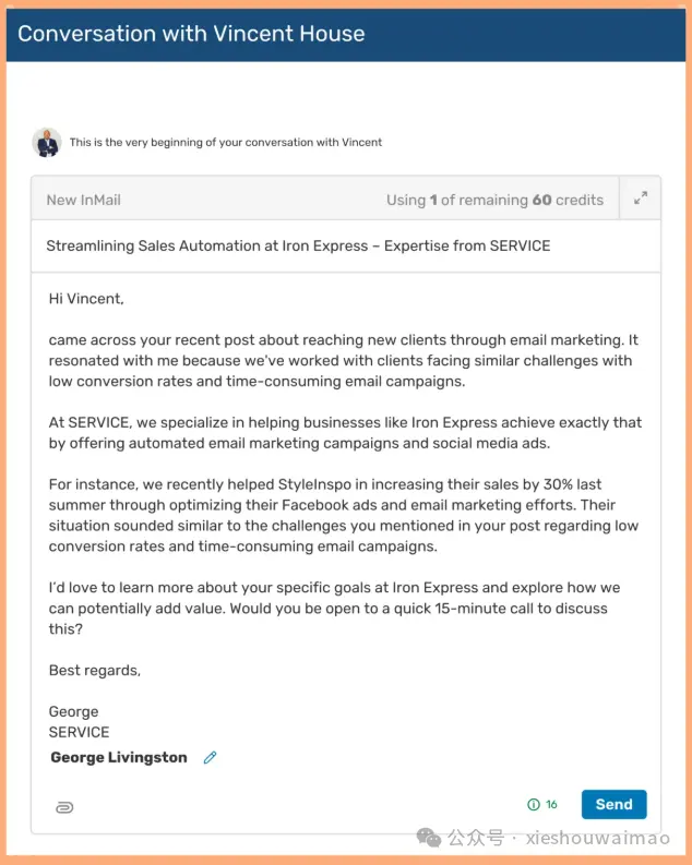 linkedin InMail模板九: 用于开发陌生客户的模板