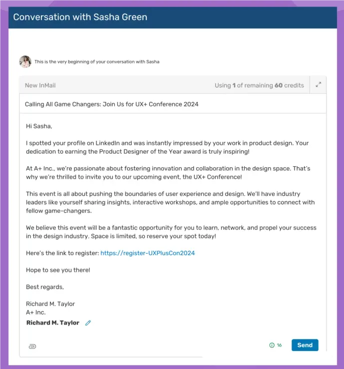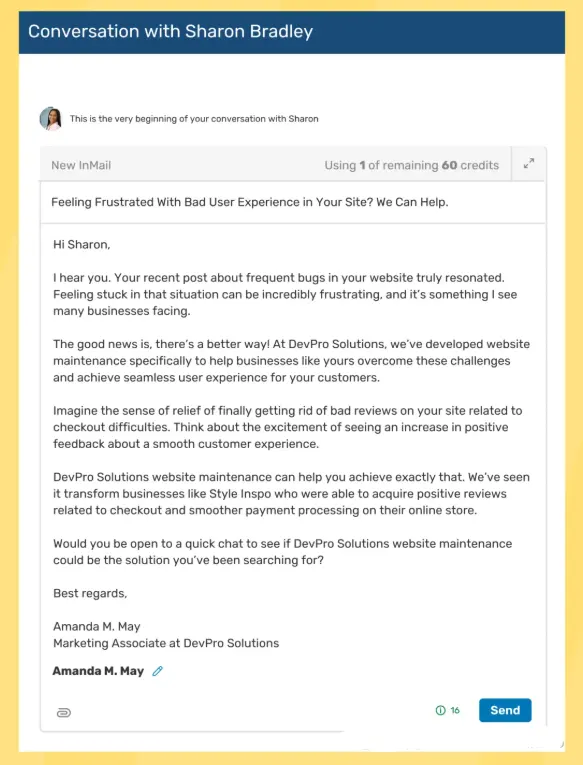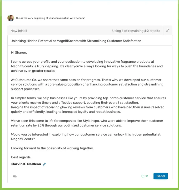 linkedin InMail 模板五: 用于潜在客户开发的 LinkedIn InMail 模板