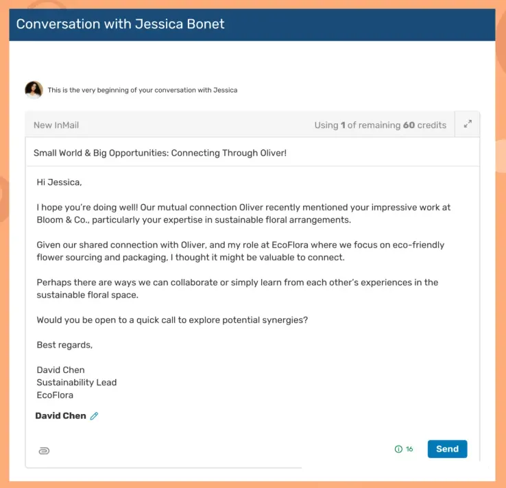 Given our shared connection with Oliver, and my role at EcoFlora where we focus on eco-friendly flower sourcing and packaging, I thought it might be valuable to connect.