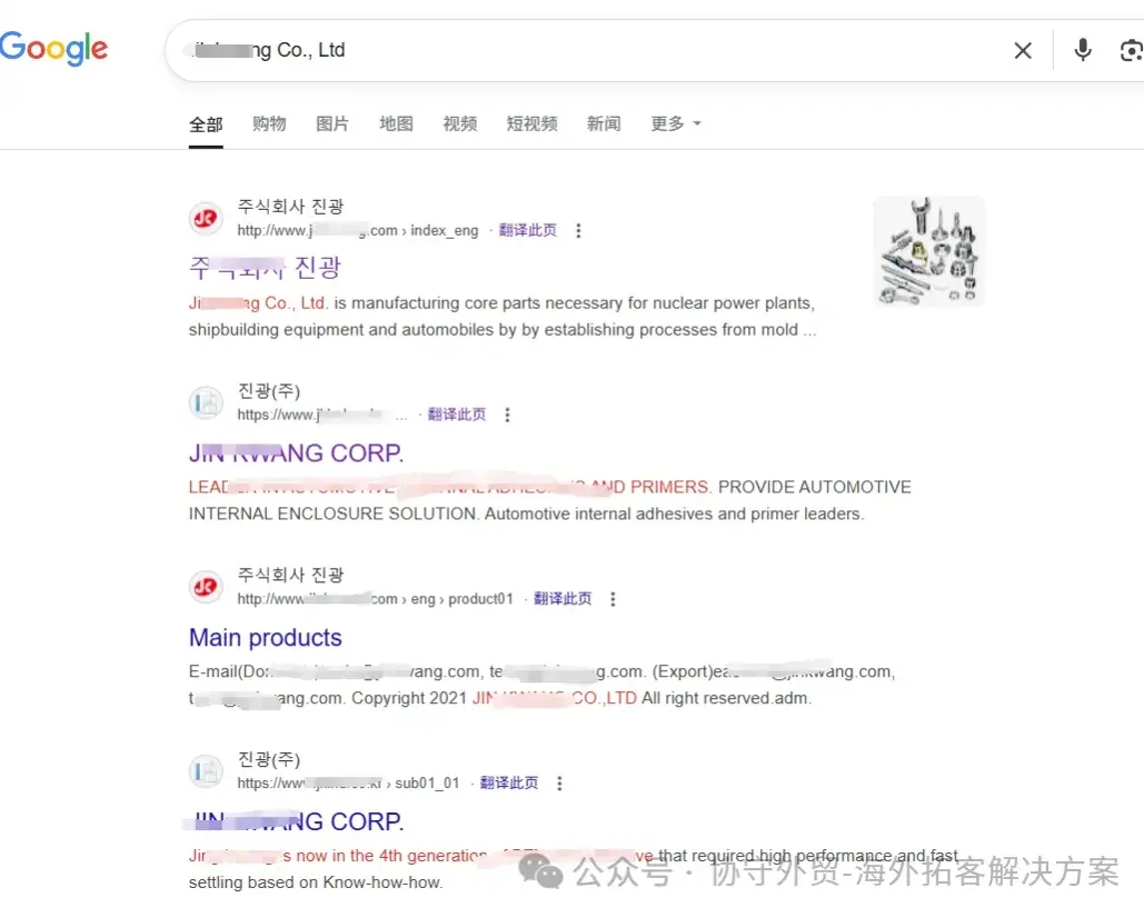 例如我今天Google搜重庆一家公司的英文名,出现了韩国公司(已确认,不是同一家)。这种后期做SEO的难度太大。