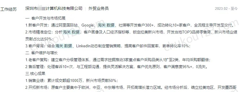 和前些年有不同,越来越多的外贸业务员,在履历里强调自己有自主开发客户的经验,以及自主开发的成果。