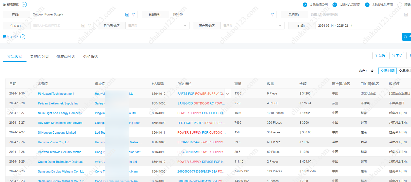 产品词+HS编码:锁定目标市场的热门品类,比如美国进口量激增的“户外储能电源”(HS 8504.40),直接定位采购商;