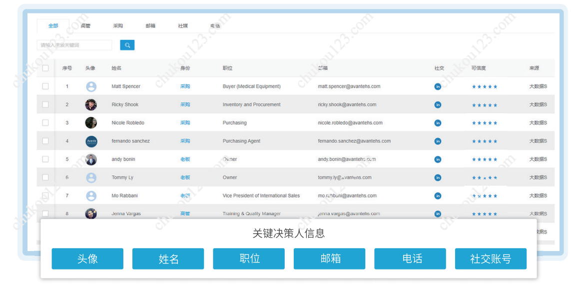 决策人挖掘:结合LinkedIn、公司官网,定位采购经理、CEO,避免“敲门却找错人”协守海关数据,一键查找买手决策人。