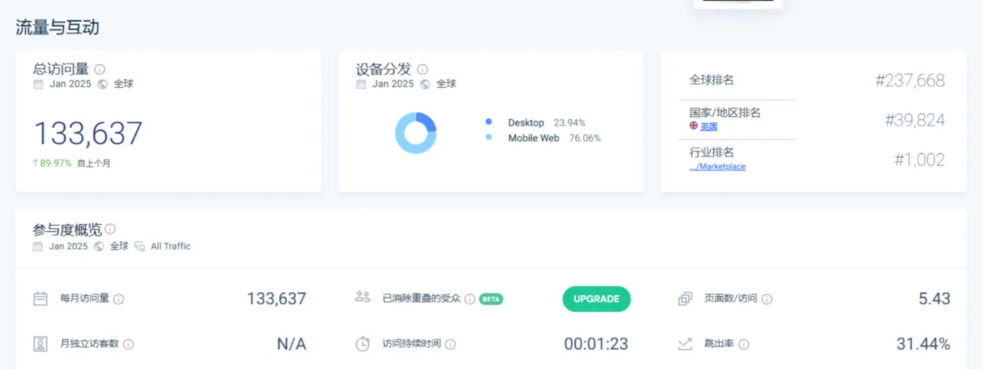 见到这样的平台Queenie一般是很开心的。 赶紧去查了这个网站的流量,流量大才值得研究;