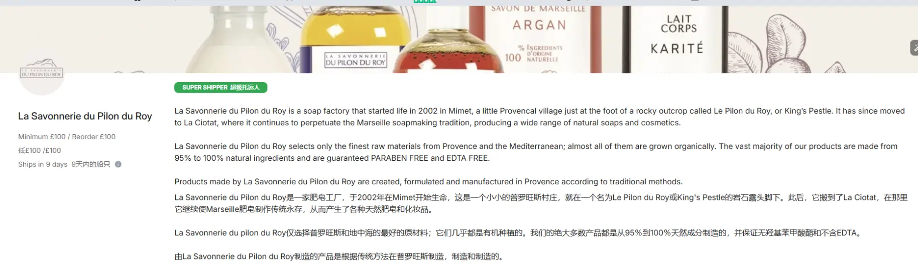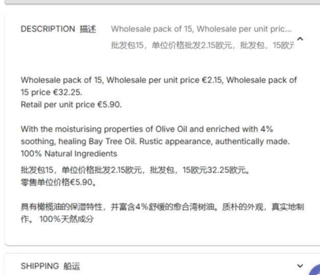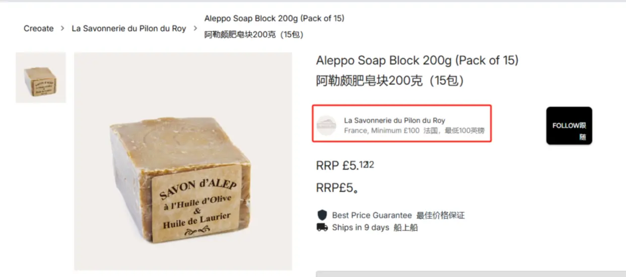 不错,有公司名,而且最小起订量100英镑,产品描述里还写了零售价和批发价,以及运输方式;