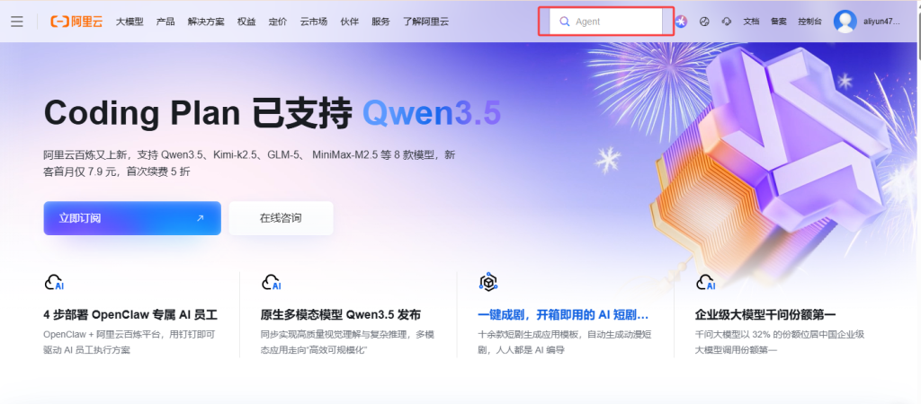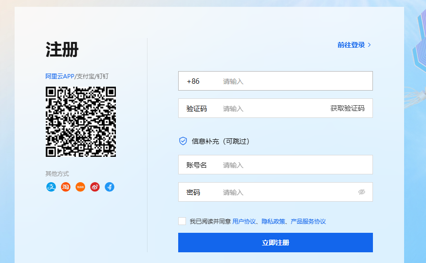 第一步:上阿里云,注册账号: https://www.aliyun.com/