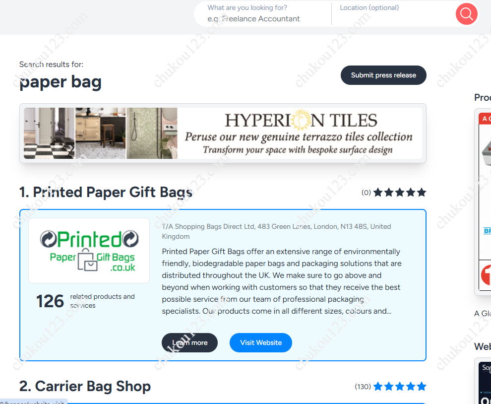 九、英国企业名录网站:https://www.abilogic.co.uk/search?q=Paper+Bag&ti=ndi1