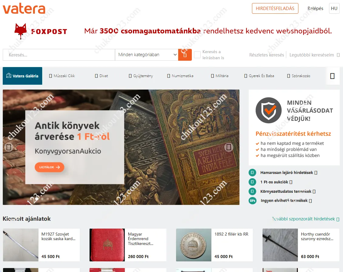 十七、https://www.vatera.hu/ 匈牙利最大的在线交易和拍卖平台,类似于 eBay,用户可以购买、出售全新或二手商品,涵盖电子产品、时尚、家居、收藏品等多个类别,同时支持固定价格销售和竞价拍卖。