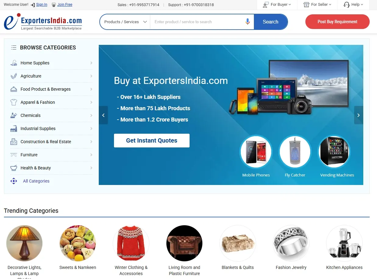 1、https://www.exportersindia.com/提供全球供应商和采购商的B2B平台,促进跨国贸易。