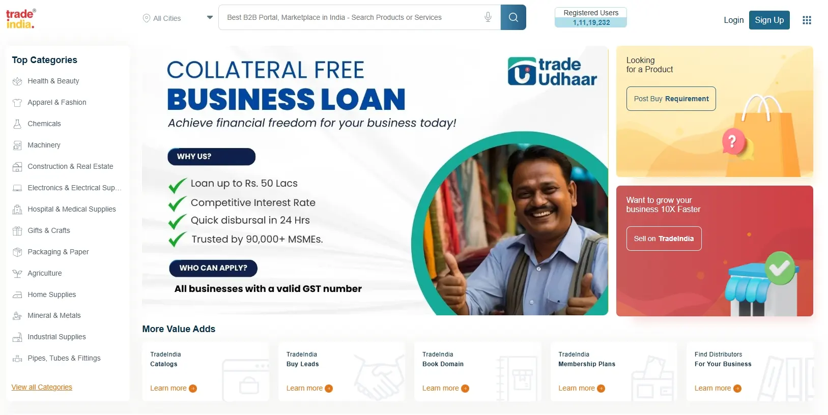2、https://www.tradeindia.com/ 印度领先的B2B电子商务平台,连接全球买家和卖家,提供多种产品和服务。