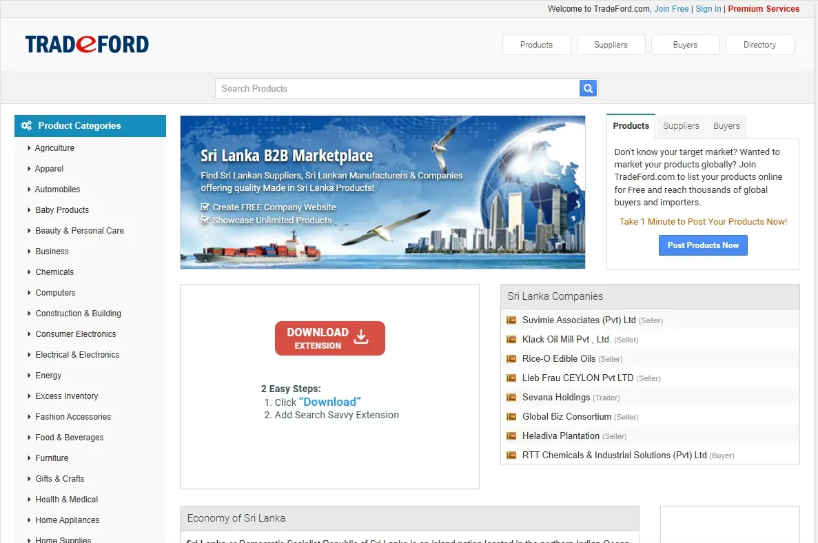 7、https://srilanka.tradeford.com/ 斯里兰卡的贸易平台,帮助各类企业进行跨国贸易