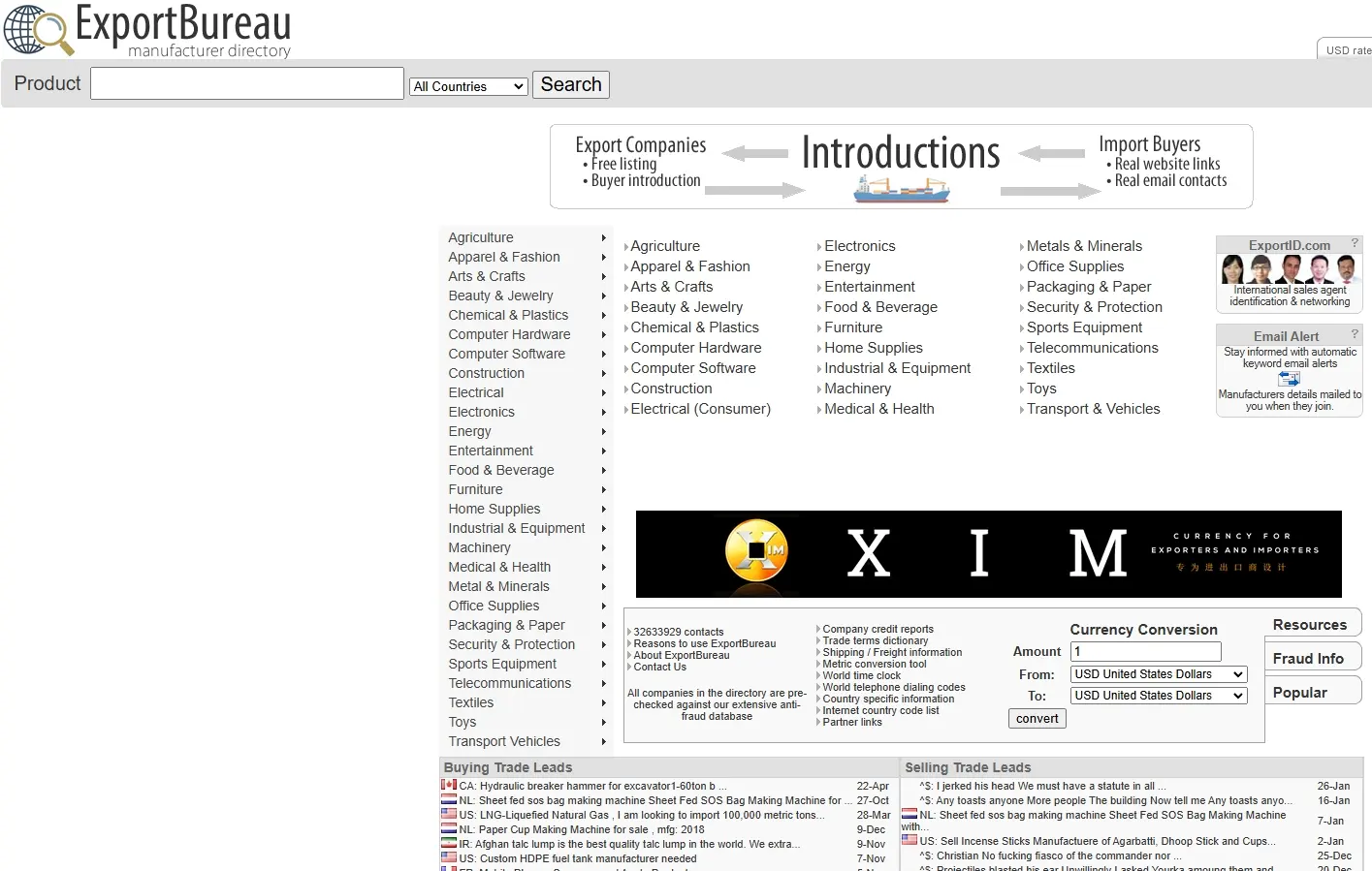 10、https://www.exportbureau.com/ 提供全球出口商与买家之间联系的B2B平台,促进国际贸易
