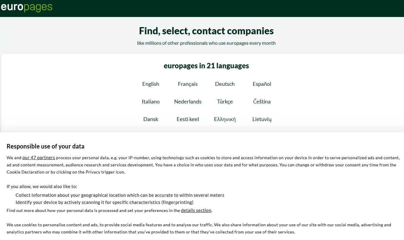 13、https://www.europages.com/languages 欧洲B2B平台,连接各行业的供应商与买家