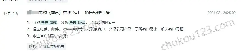 - 南京某能源公司,业务员通过海关数据寻找合适的潜在客户;