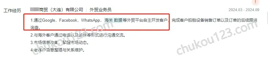 - 大连某商贸公司,产品船舶设备,通过Google、Facebook、WhatsApp、海关数据等开发国外客户