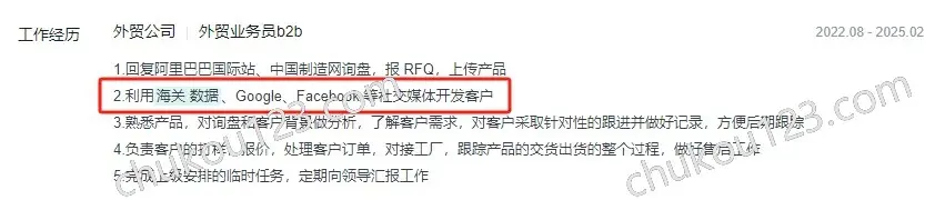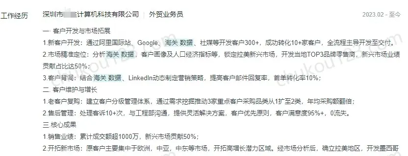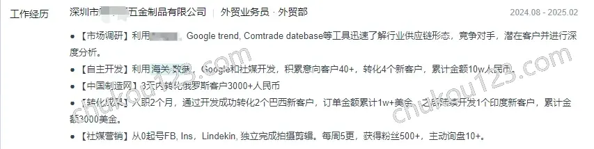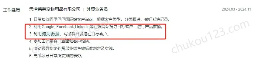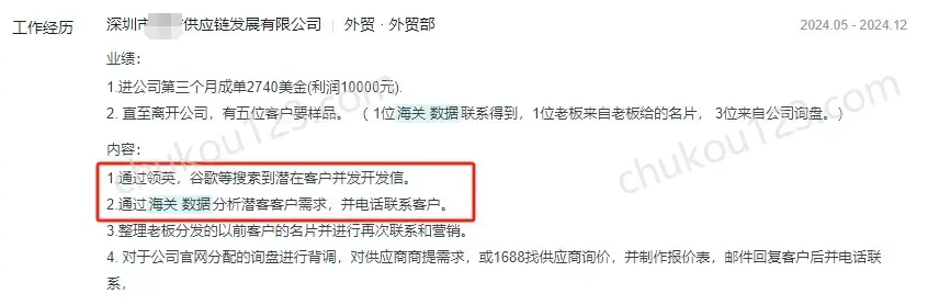 - 深圳某供应链公司,通过领英、Google、海关数据、老板分发的名片等开发新客户