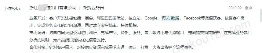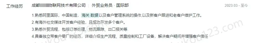 - 成都某物联网有限公司,同样使用海关数据开发客户