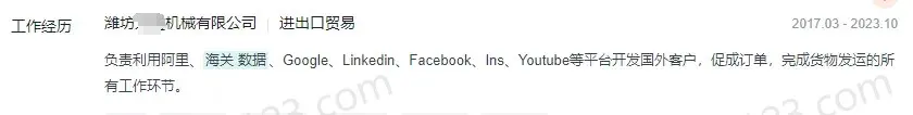 - 潍坊某公司,通过B2B平台接询盘,利用Google、linkedin、Facebook、ins、YouTube等进行客户开发