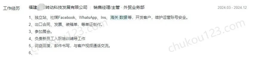 - 福州某转动科技发展公司,通过独立站、社媒Facebook、WhatsApp、ins、海关数据、展会等开发客户