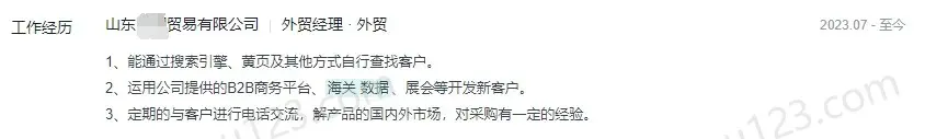 - 山东某贸易公司,通过搜索引擎、黄页以及其它方式自行查找客户,通过B2B平台、海关数据、展会等开发新客户