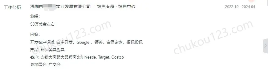- 深圳某环保餐具厨具公司,通过自主开发、Google、领英、官网询盘、招标投标、广交会等方式拓客