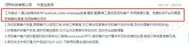 - 深圳某公司,通过facebook、linkedin、WhatsApp、海关数据等工具找到目标客户后,触达目标客户。