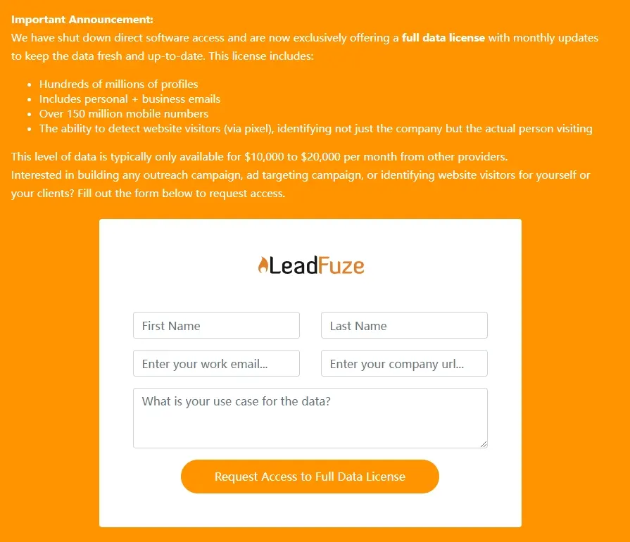 LeadFuze 需要先提供信息才能获取价格