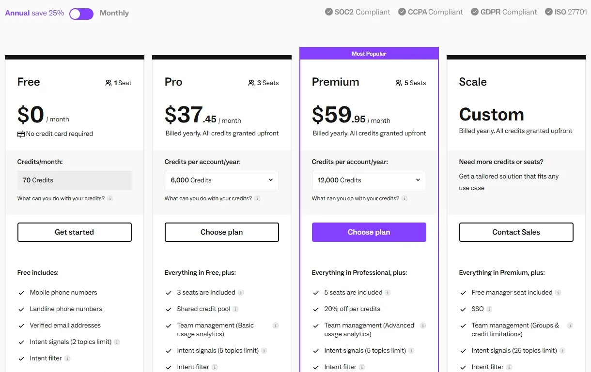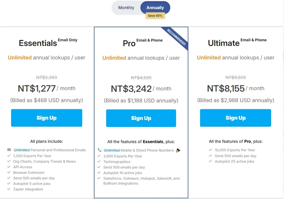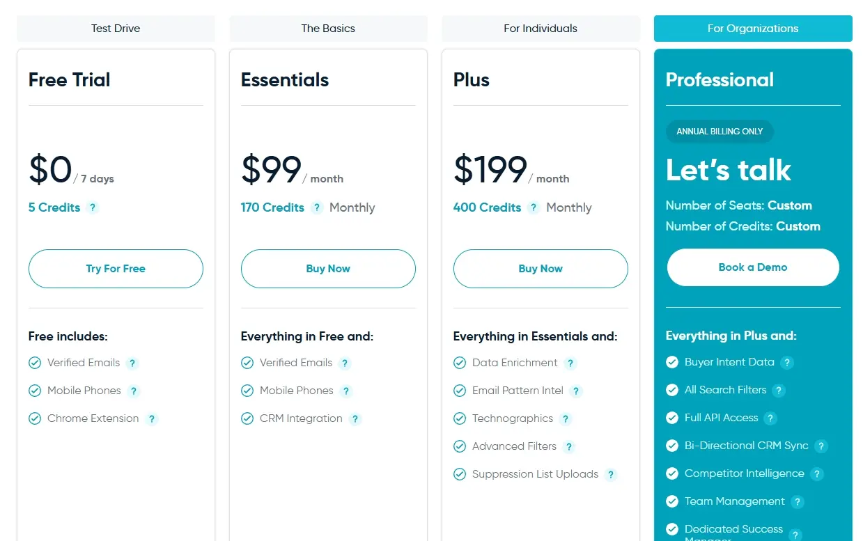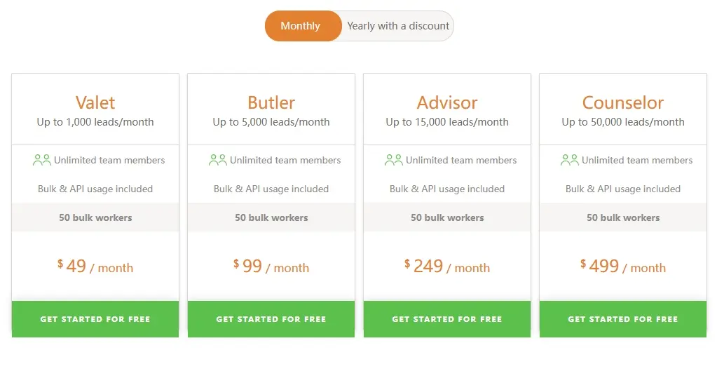 https://www.leadfuze.com/ LeadFuze 的定价方案起价为每月 147 美元,提供 500 个线索点数。 此外,还有每月 397 美元的无限计划,提供无限点数。