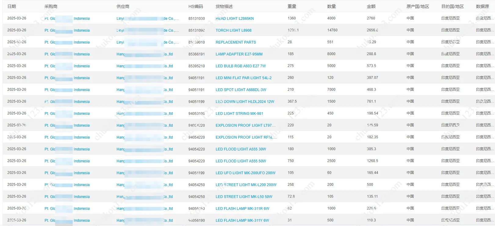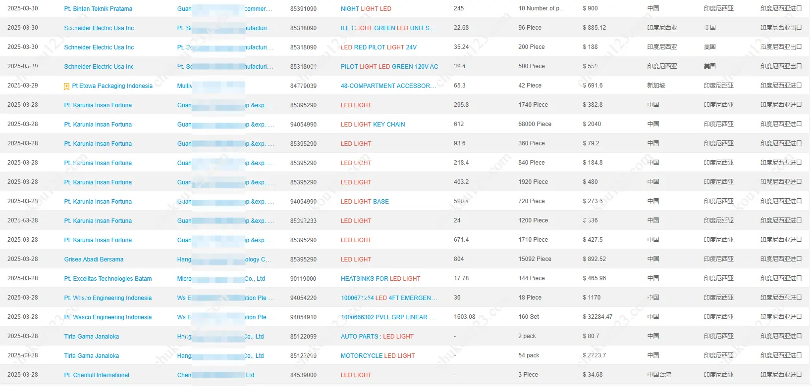 我们的印尼海关数据包含: