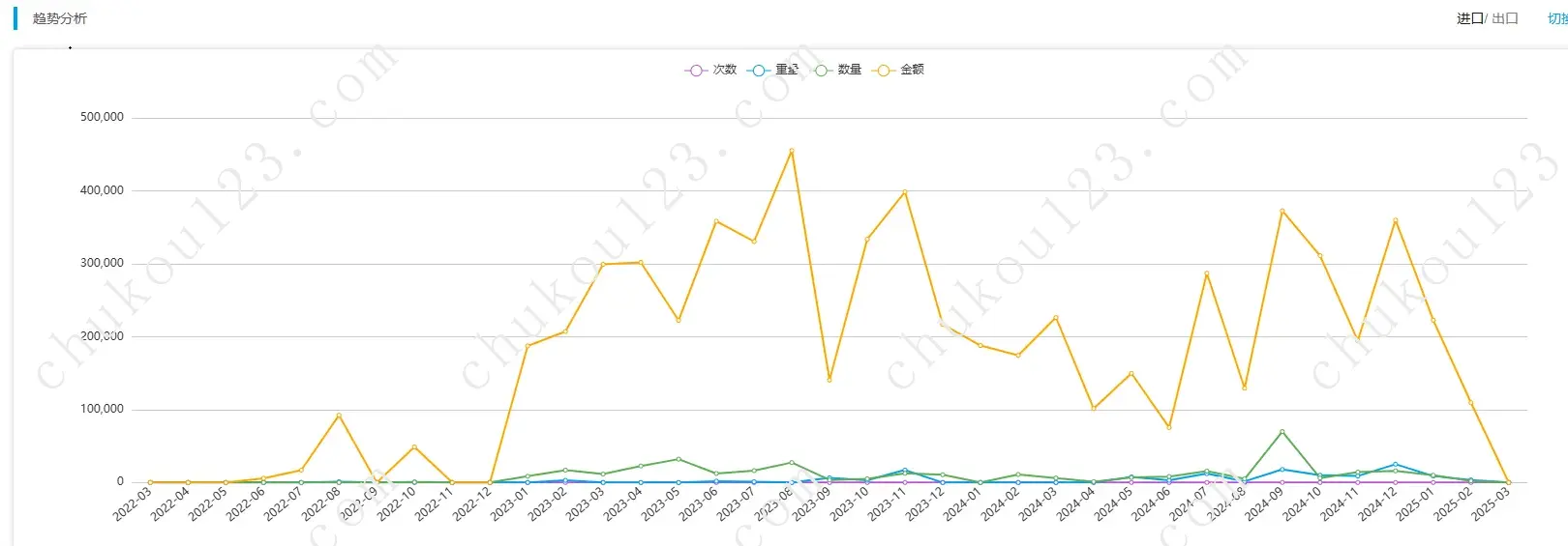 能看到客户采购的走势图,可以看到这个客户较2022年,有较大增长;甚至如果您需要,还可以看她近10年的采购走势,交叉验证该公司是否2022年才开始从中国采购。