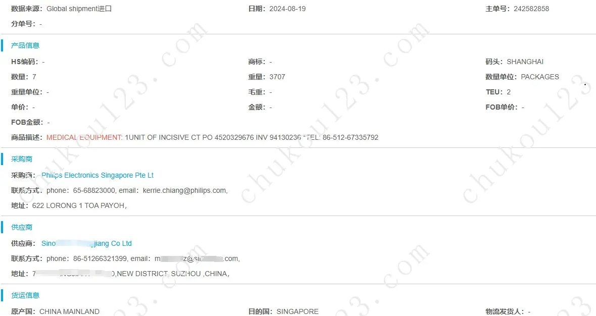 可以通过一带一路、航运等数据查询。如图,新加坡客户从苏州企业采购医疗设备;但更多需要通过搜索引擎、map、社媒等方式进行拓展;