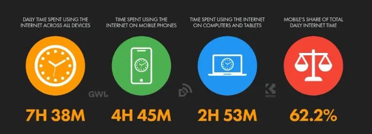 印尼16~64岁互联网用户每天使用互联网的时间长度为:7小时38分钟,手机上网时间要4小时45分钟,在计算机和平板上网的时间2小时53分钟。